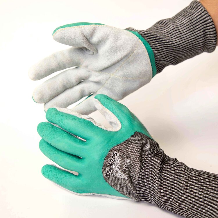 Extreem stevige tuinhandschoenen met suede palmen en lange manchetten.